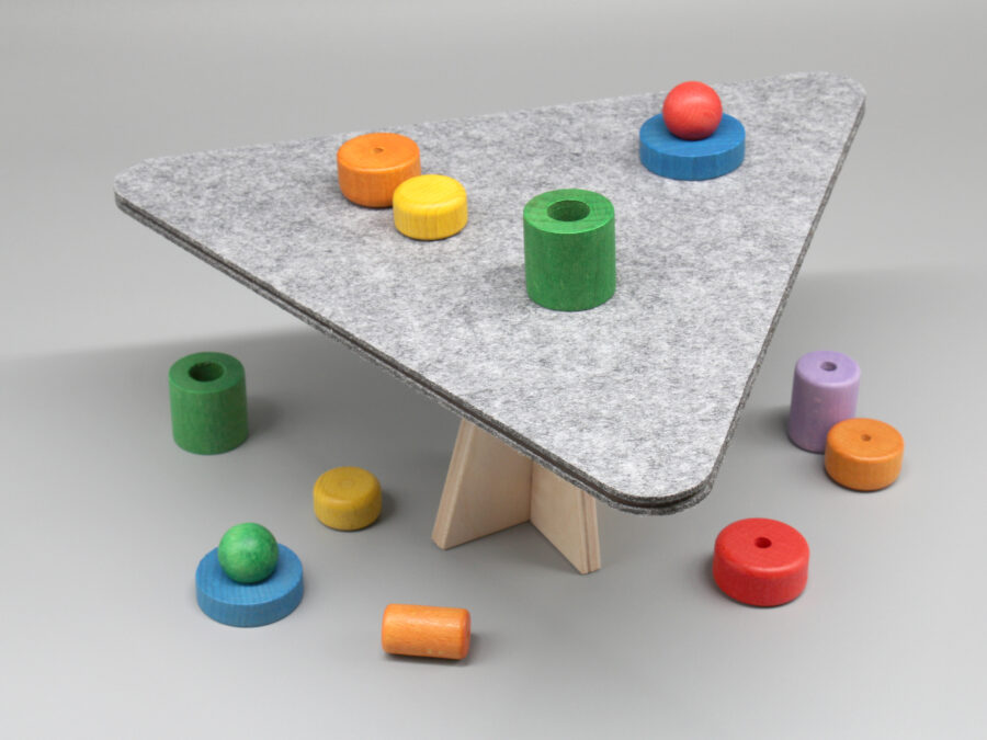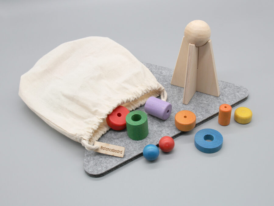 | Lieferumfang | 1 Holzkugel, 1 Turm zum Zusammenstecken, 1 Dreieck aus Filz, 27 verschiedene Spielsteine, im Baumwollbeutel |
